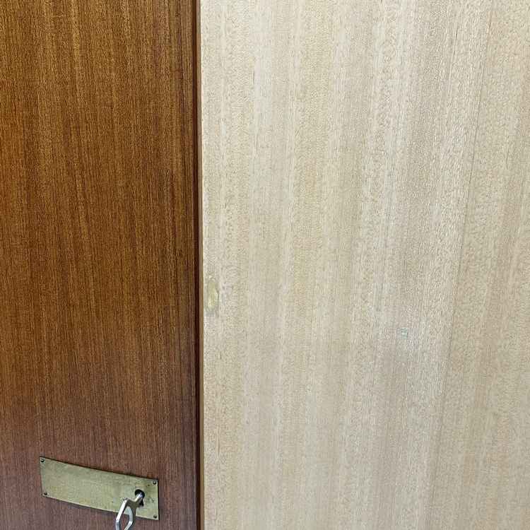 Vintage demontabele 3 deurs kledingkast, uitgevoerd in duotone teakfineer in blond & teak kleur !