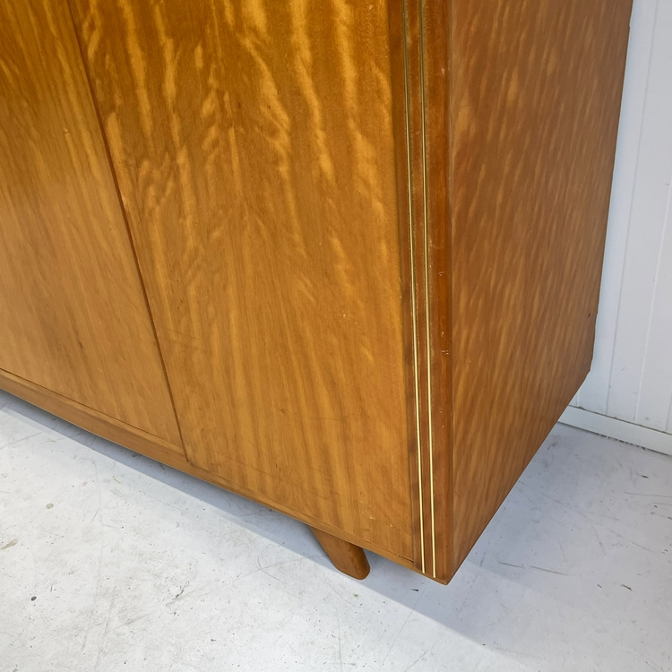 Toffe vintage mid=century demontabele 3 deurs kledingkast. De kast is uitgevoerd in een uniek vlampatroon fineer !
