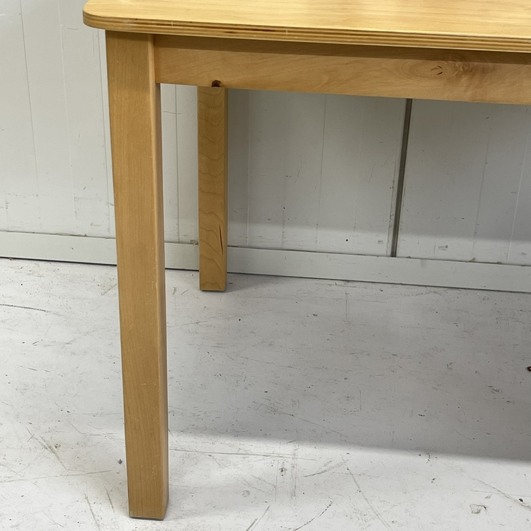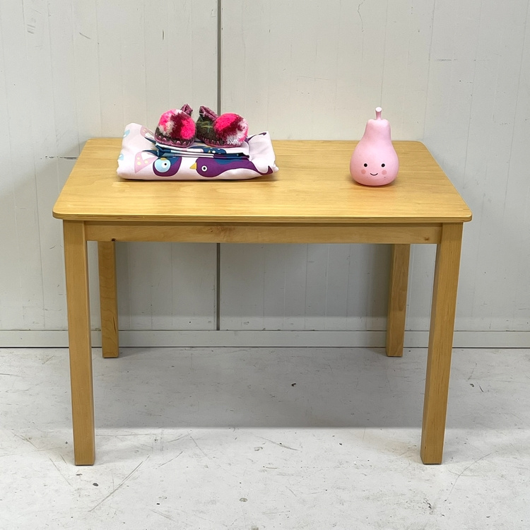 Artikelnummer: 3130 OverzichtLicht houten strak speeltafeltje/bijzettafel. Handig om te knutselen of aan te spelen. In goede conditie met lichte sporen van gebruik. De poten kunnen eraf, dus het kan ook verzonden worden.